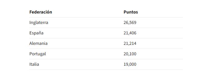 当前英格兰以26.569分高居榜首,西班牙和德国争夺的就是第二名的这个额外欧冠席位。