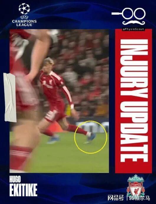 在利物浦与巴黎的欧冠1/4决赛次回合中,埃基蒂克在无任何身体接触的情况下突然倒地,双手死死捂住右脚后跟,表情极其痛苦。