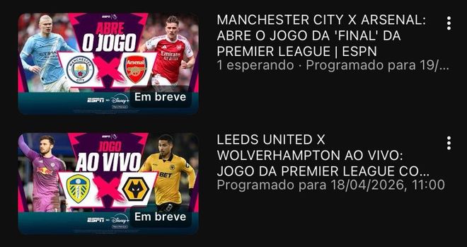 曼城对阿森纳——英超争冠关键战,ESPN巴西的YouTube频道偏偏不播。同一轮免费直播的,是利兹联对狼队。这个选择很反直觉。
