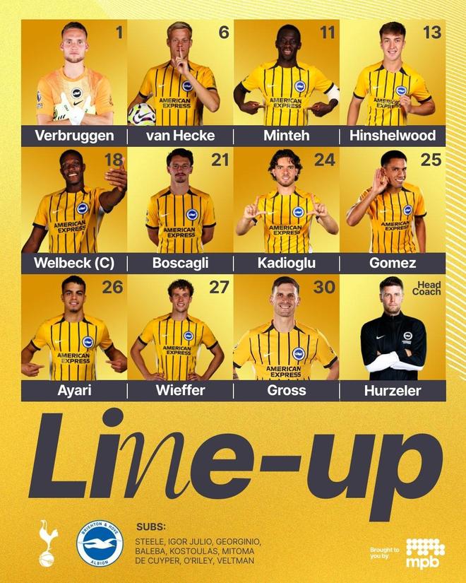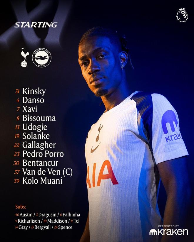 北京时间4月19日0:30,英超第33轮托特纳姆热刺坐镇新白鹿巷球场迎战布莱顿。赛前,双方公布首发阵容。