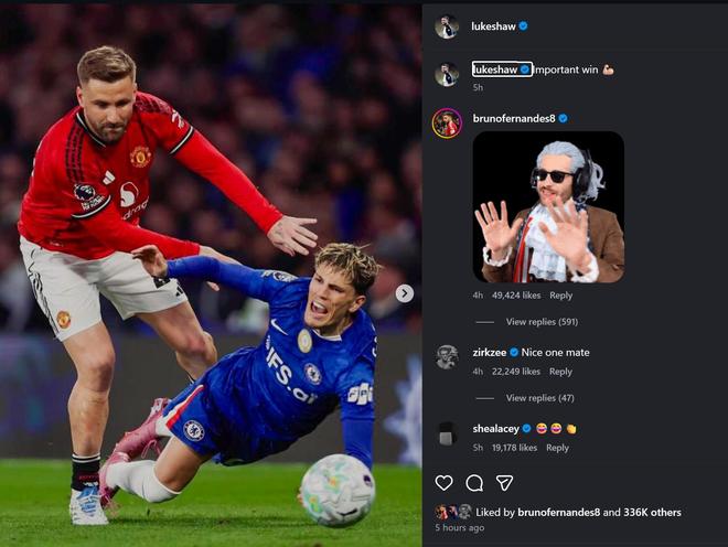 北京时间4月19日,英超第33轮焦点战,曼联客场1-0战胜切尔西,本场比赛加纳乔早早替补出场,面对老东家表现不佳,赛后卢克-肖在社媒庆祝胜利还晒出了一张和加纳乔的对抗图,队友纷纷点赞。
