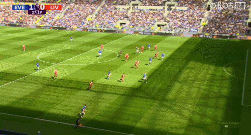 第29分钟,埃弗顿后场传倒失误,左路哈克波得球后果断斜线塞球给右肋插上的萨拉赫,后者低射破门,0比1。此球也是萨拉赫在英超的默西塞德比中打进的第9球,追平了前辈杰拉德创造的纪录。