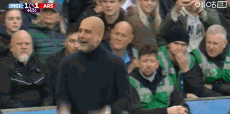 第45分钟,不满边线球判罚,瓜迪奥拉场边无奈表示