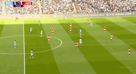 第31分钟,哈兰德推进送直塞,赖斯将球破坏