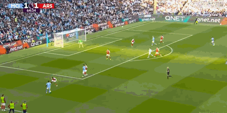 第38分钟,加布里埃尔在对抗中压倒哈兰德。