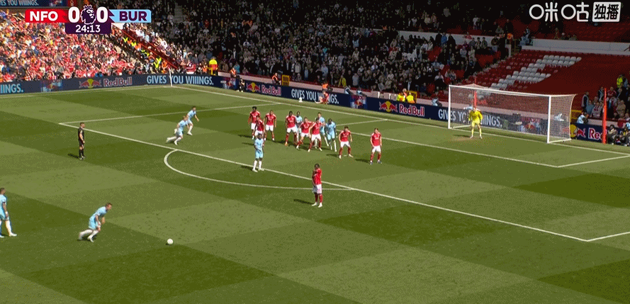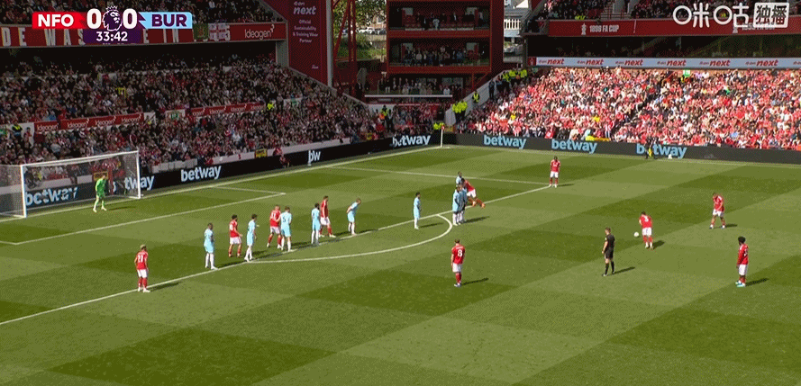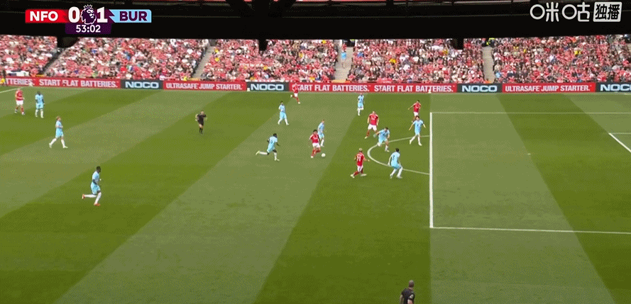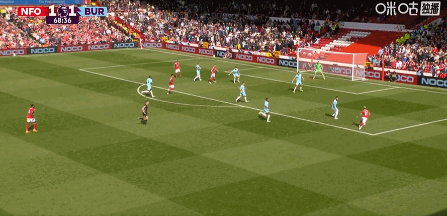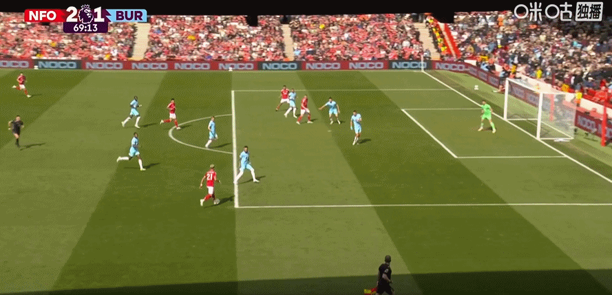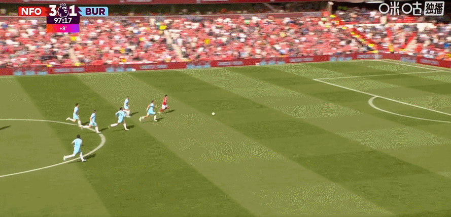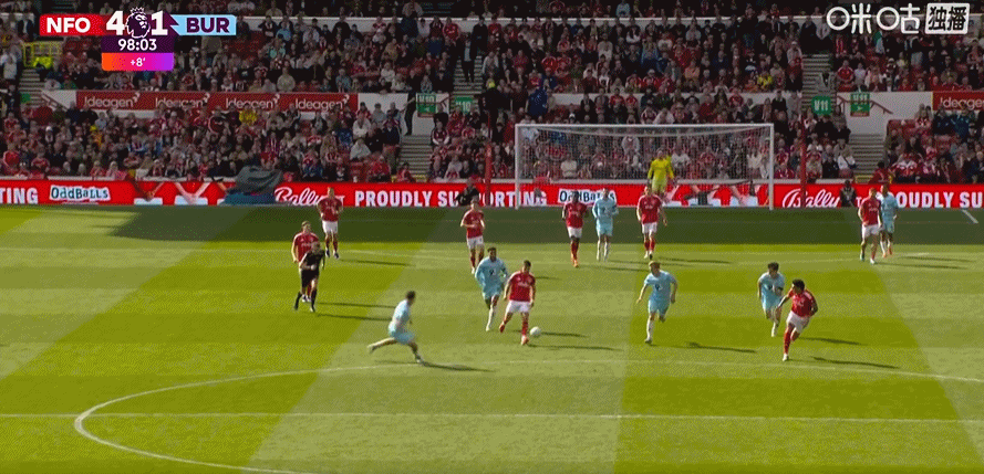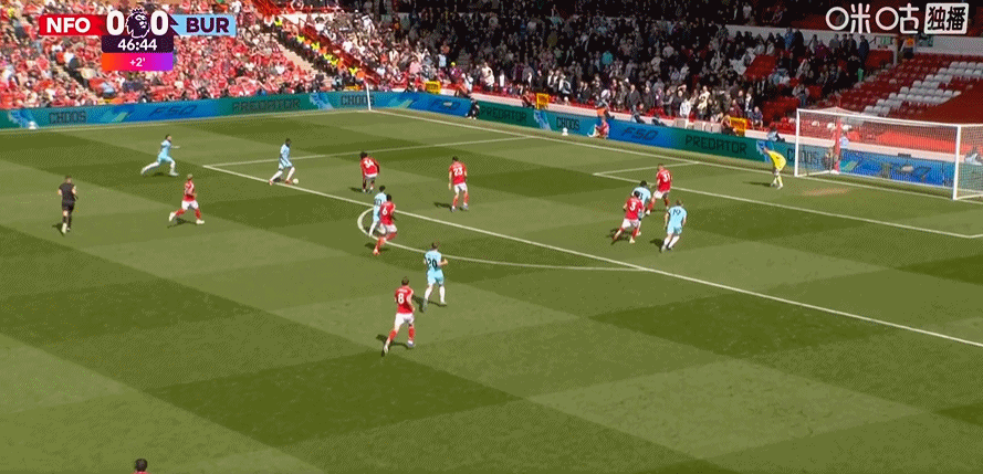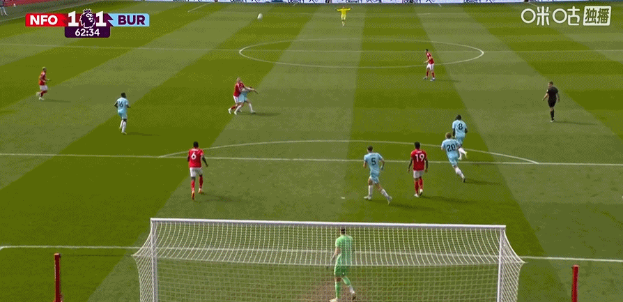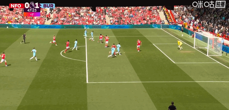 第45+2分钟,哈特曼送助攻,弗莱明左脚推射破门!伯恩利1-0