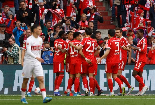 德甲第30轮迎来一场比赛,拜仁在主场迎战斯图加特。拜仁在前29场联赛取得24胜4平1负的战绩,排名榜首位置,领先优势巨大。在周四,拜仁踢了一场非常激烈的欧冠比赛,以4-3险胜皇马,从而以6-4的总比分晋级欧冠半决赛。如今回归联赛,拜仁面对的是联赛排第4的斯图加特。这场比赛拜仁只要拿到平局就能够提前夺冠。结果,拜仁击败斯图加特,提前夺得冠军!