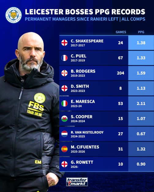 从数据上看,罗杰斯执教期间场均拿分是1.59分,在拉涅利之后的所有主帅里排第二,在这些带队打过英超的教练里排第一。