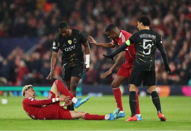 这篇报道写道:“利物浦前锋埃基蒂克在4月14日欧冠对阵巴黎圣日耳曼的比赛中右脚跟腱断裂,五天后在伦敦做了手术。”