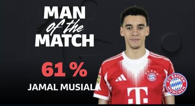 最终经过德甲官网球迷投票,穆西亚拉以61%的得票率当选全场最佳球员。