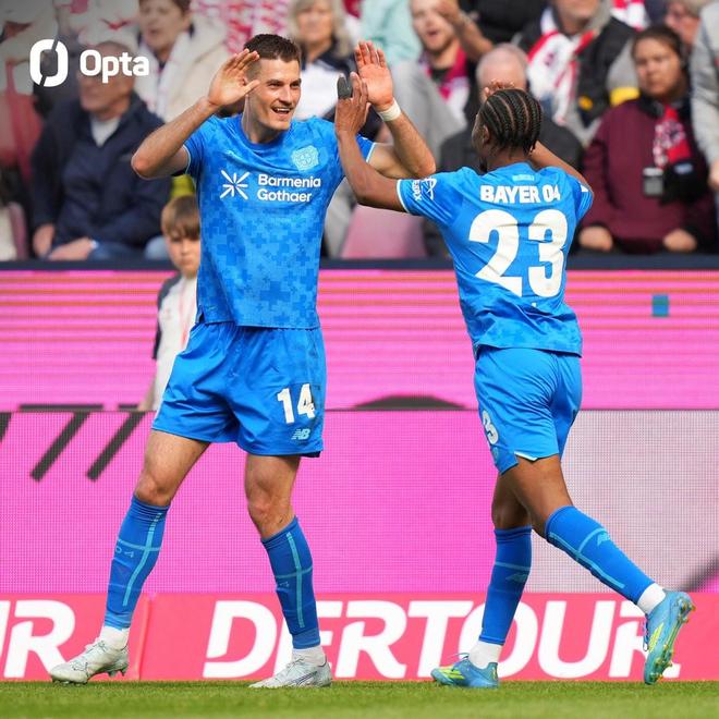此役客场对阵科隆,希克在上下半场各入一球,帮助勒沃库森2-1取胜。
